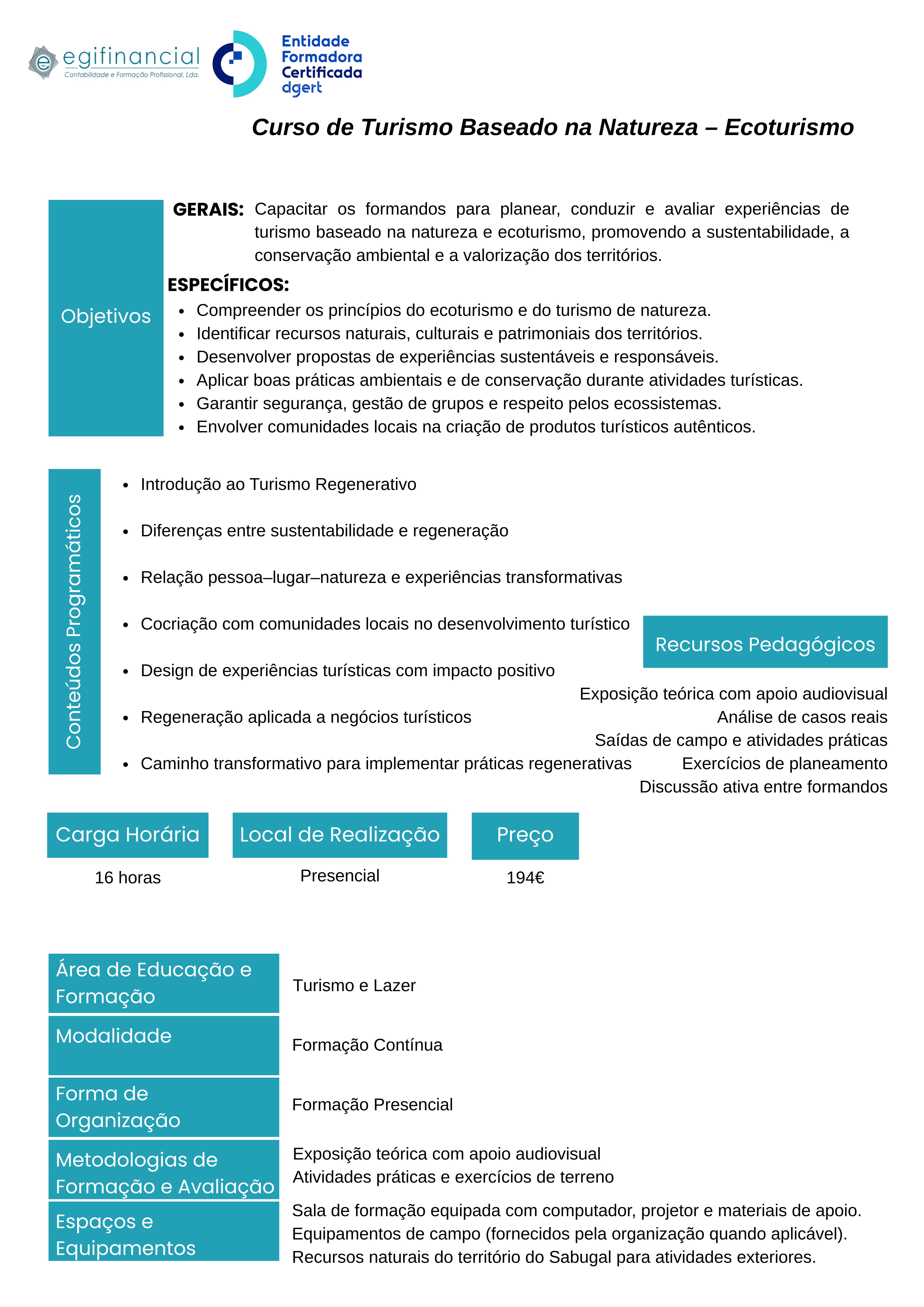 Duração: 16 horas · Formato: Presencial, no Sabugal · Preço: 194,00€
